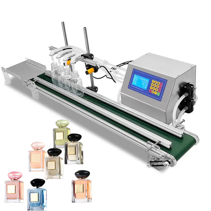 4-Heads Peristaltic Diaphragm Pump Water Drink Wine Liquid Milk Essential Oil Juice Perfume Bottle Filling Machine With Conveyor